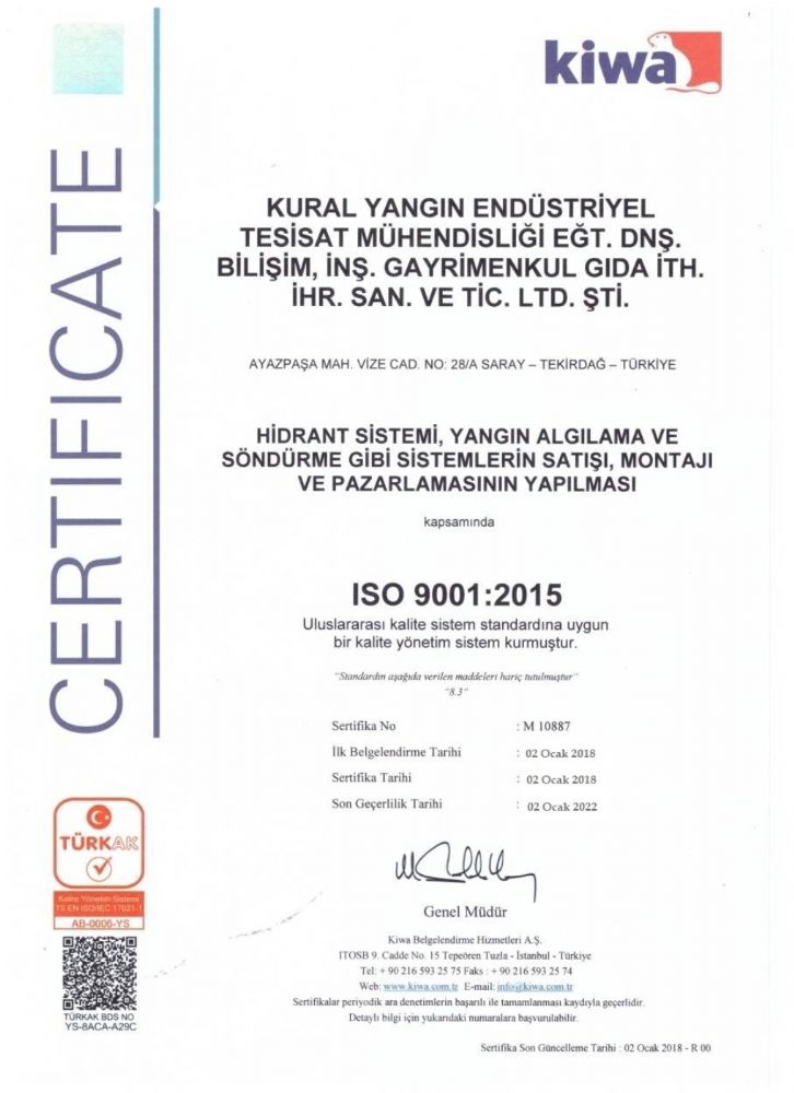 ISO 9001:2015 Kalite Yönetim Sistemleri TÜRKAK Akreditasyon