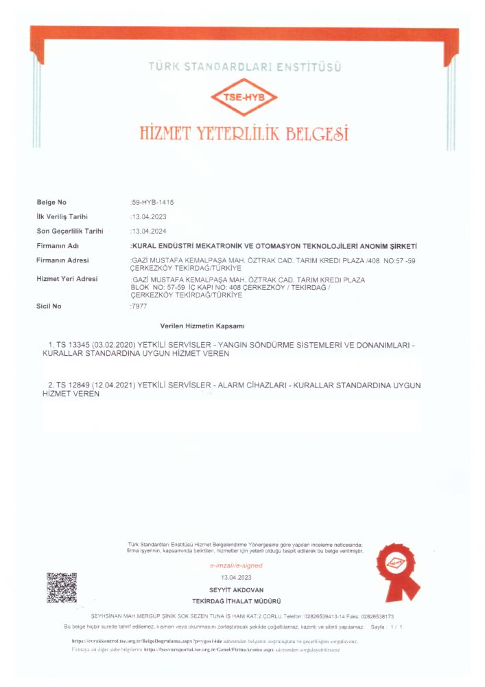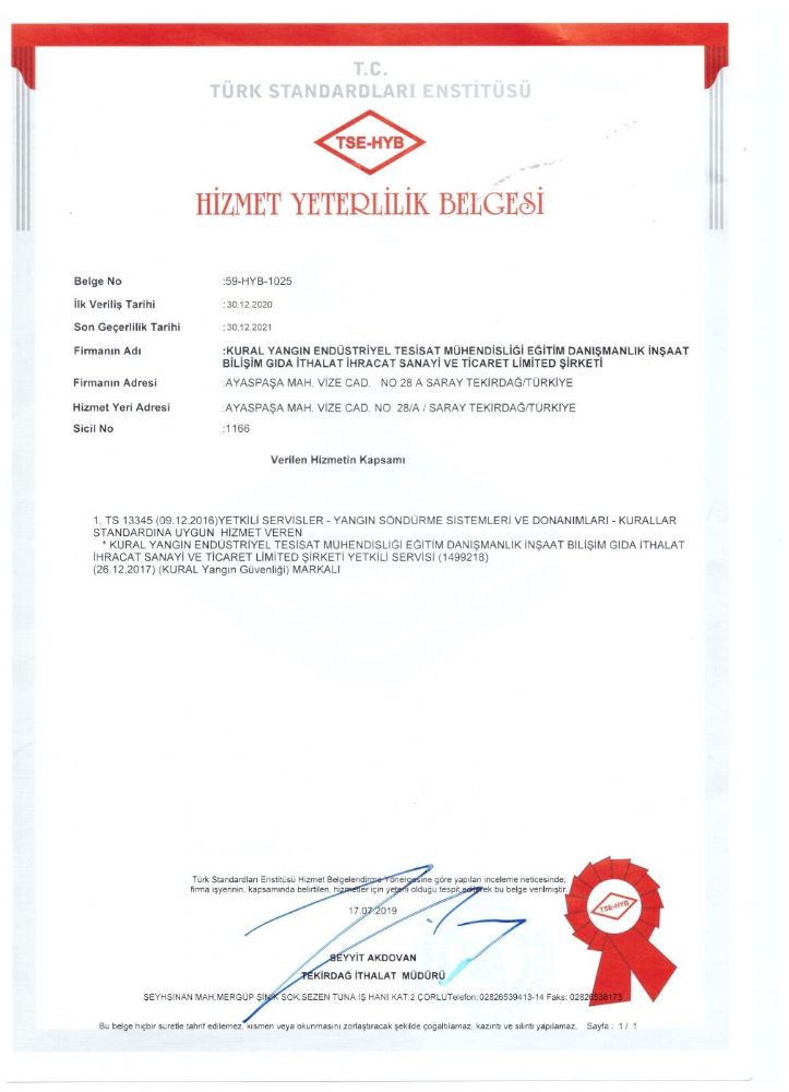 TS 13345 - TS 12849 Hizmet Yeterlilik Belgesi